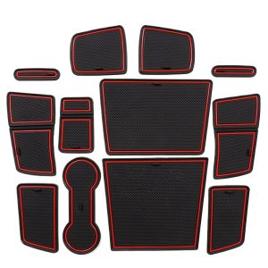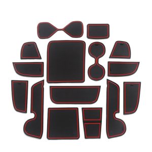15pcs Black Red Trim Door Slot Mat Cup Holder Coaster Anti-Slip Pad for Suzuki SX4 S-Cross