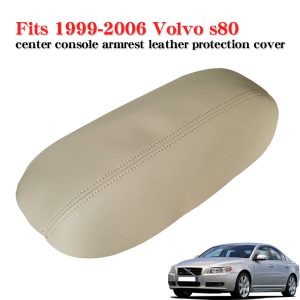 Beige Leather Center Console Lid Armrest Cover for Volvo S80 1999-2006