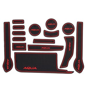 15pcs Red Trim Door Slot Mat Cup Holder Storage Box Pad Anti-Slip Mat for Toyota AQUA