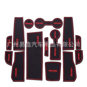 15pcs PVC Black and Red Non-Slip Door Slot Mats Cup Holder Inserts for Chevrolet Cruze 2015-2016