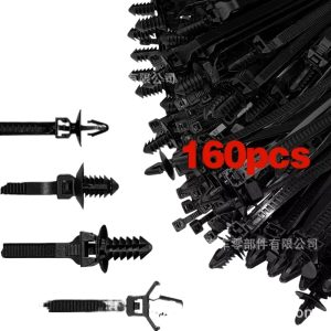 160PCS Nylon Automotive Wire Harness Fastener Zip Cable Tie Auto Wave Pipe Clamp for Universal Car