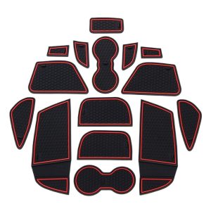 16pcs Rubber Anti-Dust Gate Slot Mats for Ford Focus 2011-2014, Red Trim