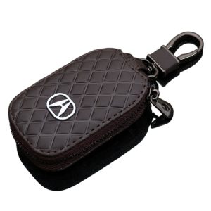 Embossed Leather Key Case with Zipper Closure for Acura CDX TLXL RLX NSX MDX RDX Key Fob Protection