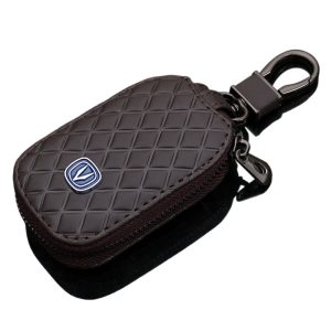 Embossed Leather Key Case with Zipper and Keychain for Changan CS55 CS75 CS35 Eado XT Lingxuan CS15 CX70