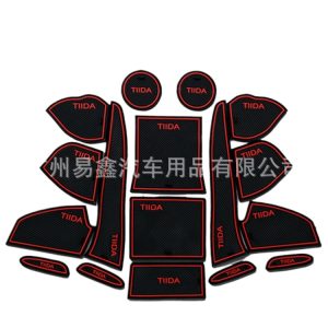 Full Set Anti-Slip Car Gate Slot Mats Cup Holder Pads Storage Covers for Nissan_Tiida 2011-2014