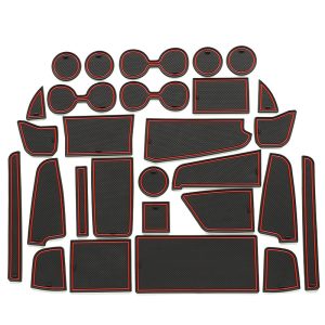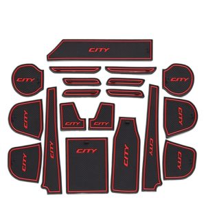 Full Set Anti-Dust Pad Liners Gate Slot Mat for Honda City 2015-2019 Interior Cup Holder Storage Console Non-Slip Red Trim