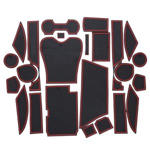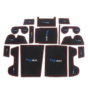 Full Set Anti-Slip Door Slot Mats and Cup Holder Liners for Toyota bZ4X (Red Trim)