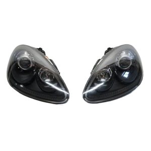 Left & Right Black Housing Headlight Assembly with LED DRL for Porsche Cayenne 2011-2014, Replaces 95863128200 95863128100
