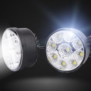 Pair of 9-LED Round Universal Car Fog Light DRL Headlight for Universal Vehicles