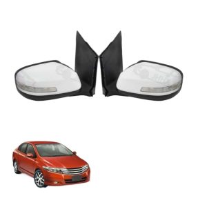 Pair White Rear View Mirror 7-PIN Electric Adjustable Lens LED Light Electric Folding for Honda City 2009-2013