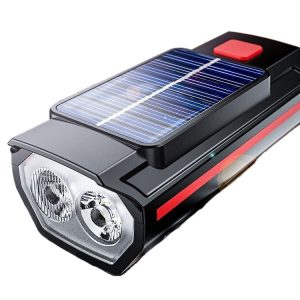Portable Solar Charging Bicycle Light with Loud Horn and Dual Beam Headlight