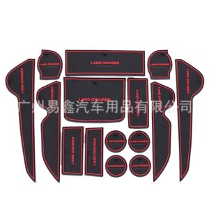 Red Trim Anti-Slip Door Slot Mats Cup Holder Liners Storage Box Pads for Toyota Land Cruiser LC200