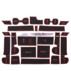Red Trim Anti-Slip Door Slot Mats and Cup Holder Inserts for Honda CRV 2017-2019