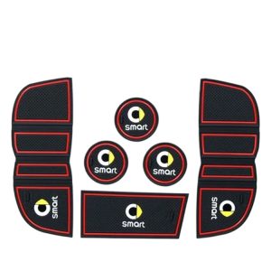 7pcs Black & Red PVC Door Slot Mats Cup Coasters Center Console Storage Box Mats for Smart Fortwo 2015-2017