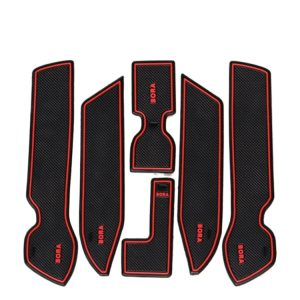 7pcs Black & Red PVC Non-Slip Door Slot Mats and Armrest Box Pads for Volkswagen Bora 2013-2015